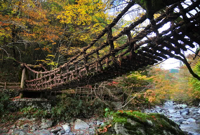 We’ll explore various sites around the hidden Iya Valley by private vehicle, including the famous Kazurabashi vine bridge and the Double Vine Bridge in Oku-Iya. These suspension bridges, crafted from intertwined vines, once served as the primary means of crossing the river. We’ll also visit Ochiai Village, a community of traditional dwellings—some dating back to the Edo period—where you can experience authentic rural life. In addition, we’ll explore the hauntingly unique Scarecrow Village, known for its population of life-sized dolls replacing departed residents. Visiting during the autumn foliage season, the breathtaking landscape of steep gorges is adorned with vibrant hues of red and gold, making this remote and mystical region even more captivating.