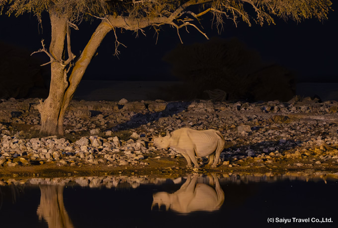 10 オコンジマ 午前と午後はオコンジマ保護区内でのサファリでヒョウを探します。レオパード、オオミミギツネ、カッショクハイエナ、シロサイなどの希少動物が生息している保護区です。夜はジェネットトビウサギなど夜行性の生き物の観察が期待できます。