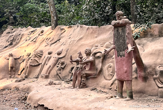 オショボの森には、ヨルバの神々(オリシャ)を象った彫像が並ぶCOLUMN バダグリ 奴隷貿易の爪痕