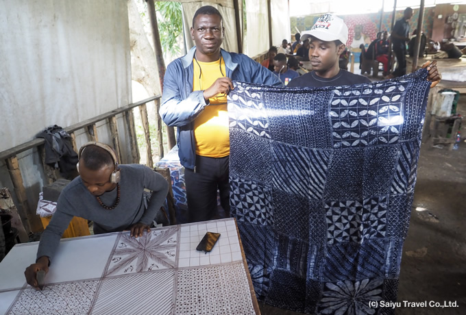 アディレと呼ばれる、キャッサバ糊を使った独特の藍染め布