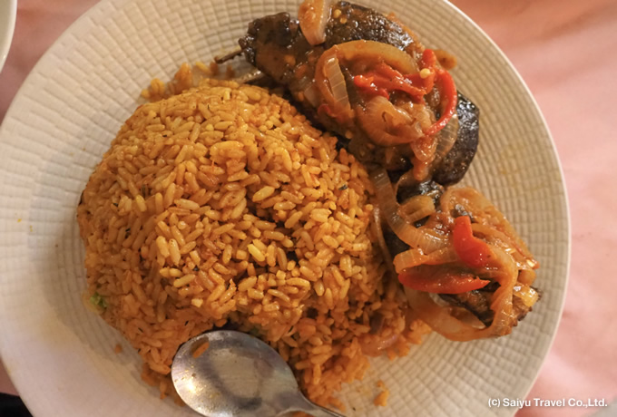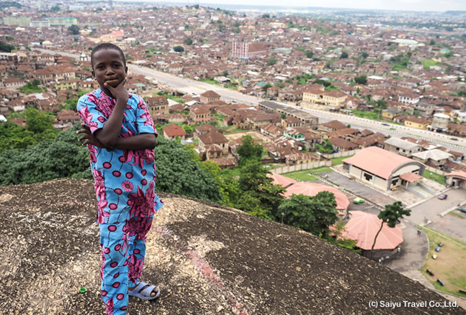 ヨルバ人発祥の地であり「岩の下」を意味するアベオクタへ。着後、ヨルバ人の聖地として現在でも信仰の対象となっているオルモ・ロックでハイキング(片道約45分、高低差140m)。眼下に広がるアベオクタの町を眺めます。また、アディーレと呼ばれる伝統的な藍染の織物の数々や、呪術で用いる動物の干物などが並ぶイトク市場を見学します。