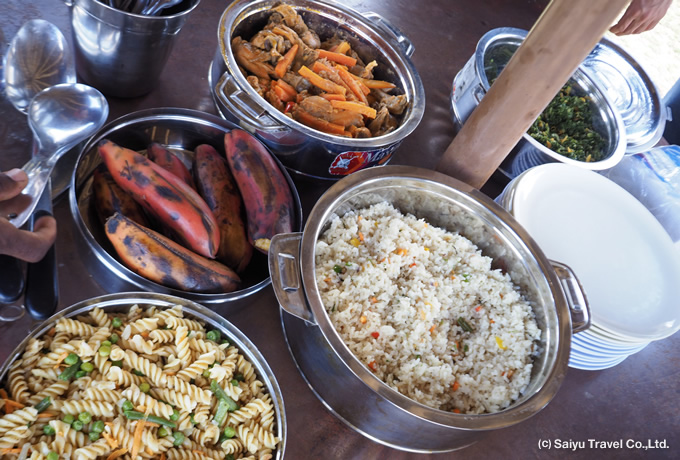 キャンプスタッフの作る食事も楽しみCOLUMN マニャラ湖のフラミンゴと木登りライオン