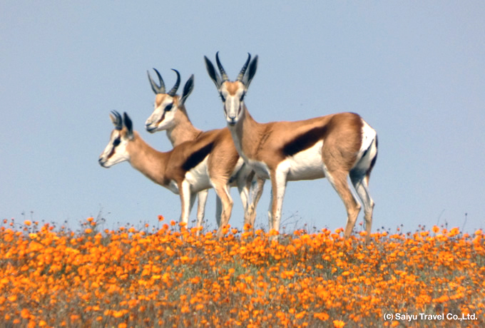 終日、スプリングボックに滞在。ワイルドフラワーで有名なフーハップ自然保護区を訪れ、フラワーウォッチングをお楽しみいただきます。オリックスやスプリングボックなどの野生動物に出会うチャンスもあります。他にも、開花状況に合わせて花の見える可能性の高いエリアにご案内いたします。