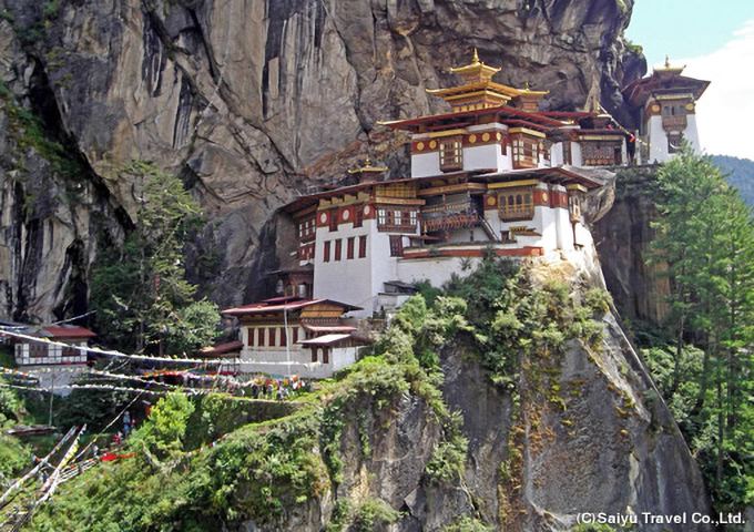 | 6 | パロ | ●パロ・ツェチュ祭見学 早朝、パロ・ツェチュ祭の最終日に開帳される大掛仏トンドルを見学。 朝食後、聖地巡礼・タクツァン僧院へ。パドマサンバヴァが瞑想したという、チベット仏教圏屈指の聖地タクツァン僧院までハイキング(往復5~6時間)。上まで登らずに途中の展望台でお休みいただくこともできます。 パロ泊 |
