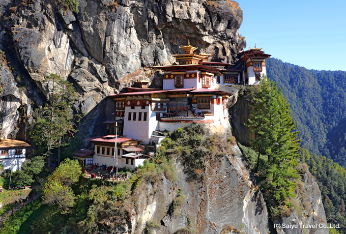 パロ、ティンプー、プナカの3都市の主なみどころはもちろん、古刹タクツァン僧院も訪問する充実の観光内容。小川のせせらぎや広葉樹の美しいタクツァン僧院やのどかな田んぼの広がるチミラカンへのルートでは、緑豊かなブータンの自然を体感することができます。COLUMN 古刹タクツァン僧院を訪問