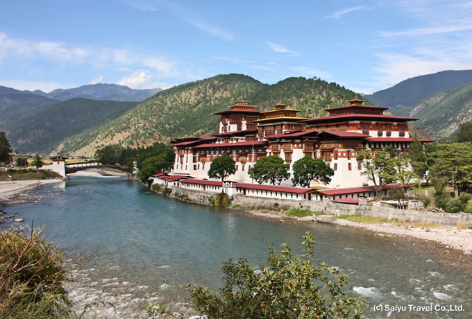 その後、ドチュ・ラ(峠:3,090m)を越えて、かつての「冬の首都」プナカにてプナカ・ゾンを訪問。途中、天気がよければブータンヒマラヤを展望することができます。また、丘陵上に建つチミ・ラカンまでのハイキングもお楽しみください(片道約20分)。