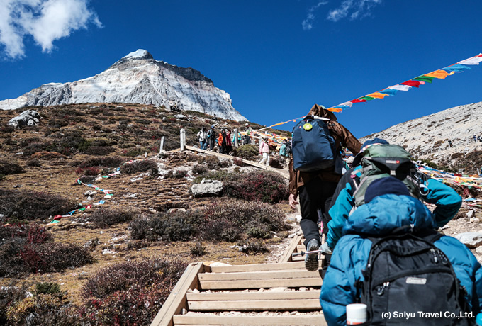 | 高山病について | 高山病の影響が十分予想されるコースです。ご参加の方全員に健康診断書をご提出していただき、弊社の嘱託医の判定を受けていただきます。弊社では高山病対策として、添乗員はパルスオキシメーター(血中酸素飽和度測定装置)を持参します。 |