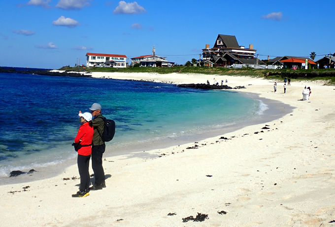 朝、専用車にて城山浦(ソンサンポ)へ。着後、 15分ほど船に乗り牛島(ウド)へ。玄武岩由来の黒い砂が特徴的なコンモレ海岸、紅藻類が生理過程で炭酸カルシウムを蓄積し、石のように硬く固まったものが覆う珊瑚海水浴場を訪れます。その後、済州島に戻り約5,000年前起きた水中マグマ噴火によってできたタフコーン(砕屑丘)・城山日出峰を見学します。