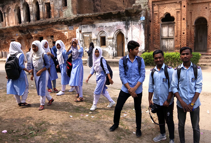 朝、リキシャが行き交う喧噪のオールドダッカと活気あふれる船着き場のショドルガート、ダッカ市内最大の野菜卸市場と線路脇のスラムに暮らす人々の様子を撮影。午後、ダッカ郊外のショナルガオンを訪れ、古い街並みを撮影します。 機中泊 |