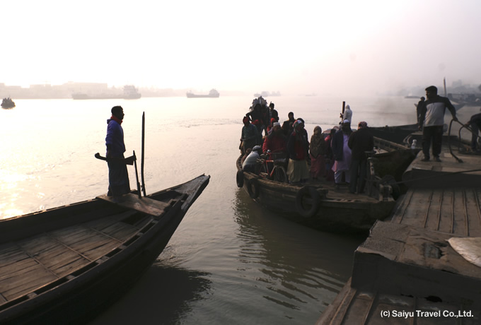 専用バスにてダッカへ。道中、世界遺産のモスク都市バゲルハットにて撮影。ダッカ郊外では川岸の船着き場にて石や砂を運ぶ人々を撮影します。 ダッカ泊