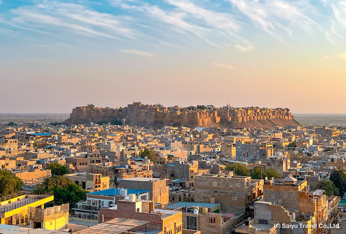 朝、「ゴールデンシティ」と呼ばれる街で昔日の雰囲気が色濃く残るジャイサルメール城内の旧市街(ハヴェーリー等)を散策します。その後、専用バスにて「ブルーシティ」ジョードプルへ。 ジョードプル泊