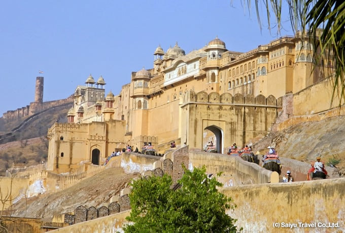 専用バスにて「ピンクシティ」ジャイプルへ。着後、ジャイプル市内観光(アンベール城、シティパレス、風の宮殿(外観)等)をお楽しみください。