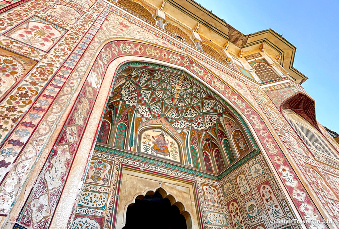 繊細な模様が施されたアンベール城のガネーシャ門