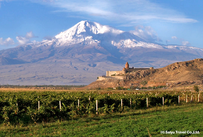 専用車にて、コーカサス最大のセヴァン湖に立ち寄ります。その後、近くの峠をハイキングします(約30分)。地元の農場に立ち寄りチーズ作りを見学。地元のワイナリーを訪れ、ブドウ畑をのんびり散策し、自家製ランチをお楽しみください。専用車で移動。アララト山を背にして建つホルヴィラップ修道院も見学します。専用車にて、エレヴァンへ。