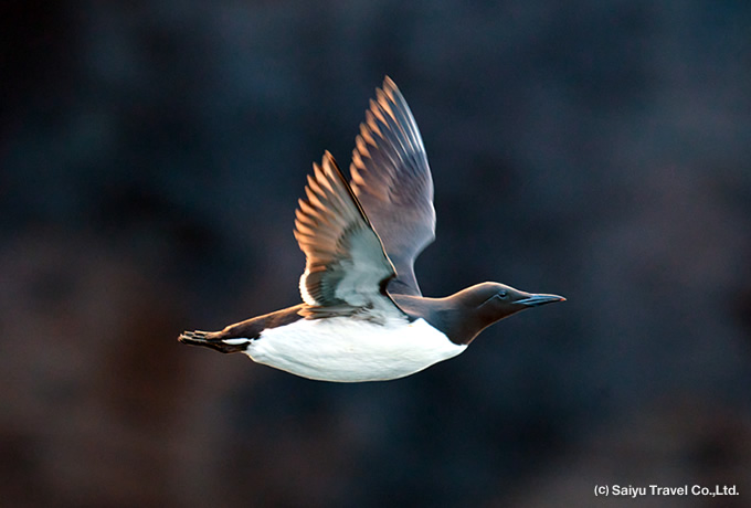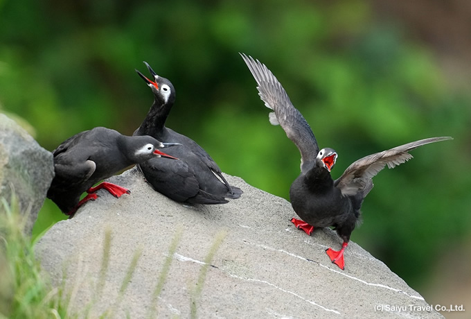 北海道羽幌町から、27km沖合にあり、島の西海岸には毎年3~8月にかけて8種100万羽の海鳥が繁殖します。海鳥の中でもケイマフリとウトウは世界で最も観察しやすい場所といっても過言ではありません。求愛するケイマフリのツガイの美しさ、日没とともに巣へと戻り、抱卵交代を行うウトウ。他にもウミガラス、ウミウ、ヒメウなど。夏の繁殖期ならではの光景に出会えます。