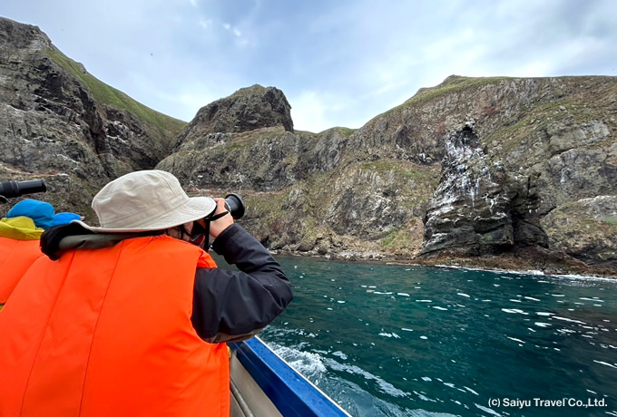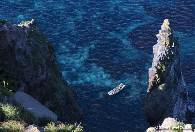 ポイント小型ボートで絶海の天売島をクルーズ