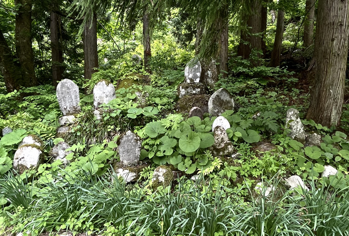 タクシーにて、中土駅へ。 ●塩の道トレッキング(約7時間/12km) 昨日に引き続き「石坂越え(後半)」のコースを歩きます。中土駅から小谷村の中心を通過した後は「千国越えのハイライト」を進み、白馬村との境界となる松沢(800m)まで歩きます。いくつもの石仏群を通過しながら千石宿や牛方宿など当時と変わらないような景色の中を歩きます。松沢(松沢口)からはバスにて白馬大池駅へ。着後、列車にて糸魚川駅へ戻ります。着後、解散。 食事:朝○ 昼× 夜×