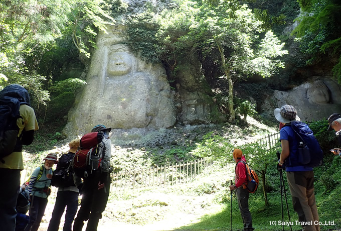 大分空港09:50集合。専用車にて国東半島峯道ロングトレイル・豊後高田コースの起点となる熊野磨崖仏(くまのまがいぶつ)へ。 豊後高田:真玉温泉 山翆荘泊|食事:朝× 昼× 夜○
