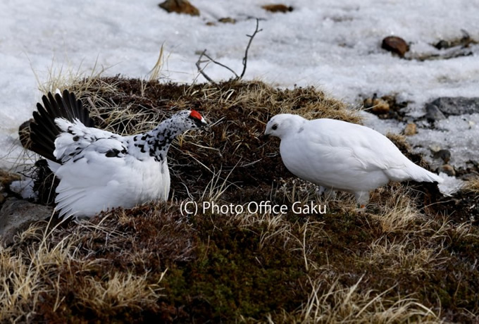 日本では限られた高山で生息するライチョウ。日本の野鳥では唯一1年に3回羽の色を替えます。 冬は純白、夏は白黒ツートン、秋は焦げ茶色となり、保護色で天敵から身を守ります。 GW明けのこの時期オスは夏羽にほとんど替わっている可能性がありますが、メスはまだ純白に近い姿に出会える可能性もあります。 4月下旬に比べてライチョウたちに出会える確率は上がると思います。雪山バックのライチョウを撮るチャンスです。