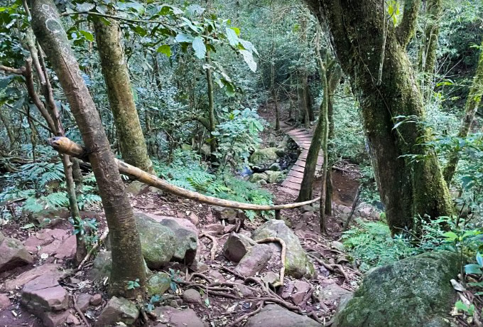 専用車にて登山口(300m)へ。ジャングルのトレイルを歩き、パラグアイ最高峰・カンドゥー山(842m)へ(約4時間)。下山後、専用車にてブラジルとの国境の町、シウダー・デル・エステへ。