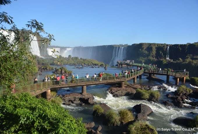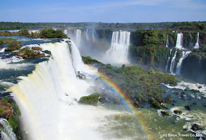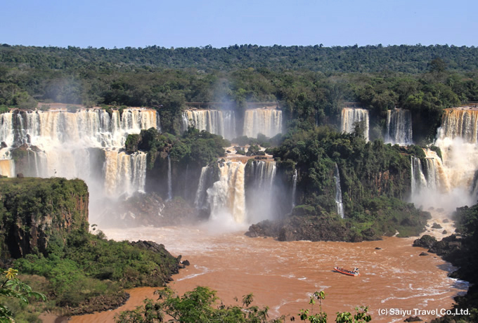 ブラジルとアルゼンチンの2つの国にまたがって流れる世界三大瀑布イグアスの滝。ブラジル側にはイグアスの全景が見渡せる展望橋や森の中のマクコ滝があり、滝下流のスリリングなボートクルーズなどで間近に迫る瀑布を見学。アルゼンチン側ではイグアス最大の滝、「悪魔の喉笛」の迫力ある景観を真上から見学します。轟音をあげ、大量の水しぶきを飛ばしながら流れ落ちる様はまさに南米随一の絶景です。ブラジル側、アルゼンチン側と2日にわけてイグアスの滝を満喫します。