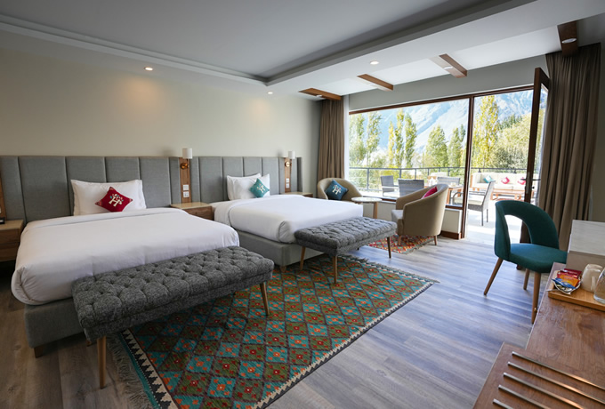 2025年秋にオープンしたハシュピリゾートに連泊します。シガール渓谷の5000mを超える山の景色もお楽しみいただけます。