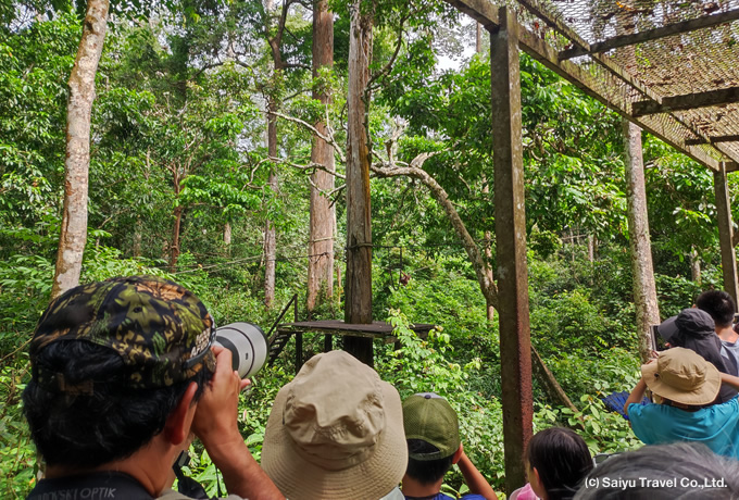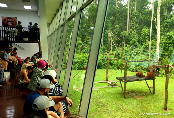 オランウータンリハビリテーションセンターでの見学の様子 COLUMN ボルネオ島のキナバタンガン川流域に広がる熱帯雨林