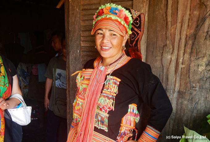 専用車にてライチョウへ。途中、タンウイェンに立ち寄り、黒ヤオ族、青モン族、白ターイ族の村を訪問します。