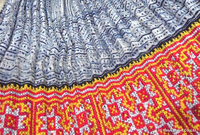 ろうけつ染めと刺繍が美しいモン族のスカート