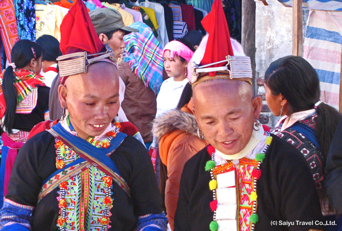 専用車にて、棚田が広がる美しい山上にあるダオサンへ往復観光。着後、ハニ族や白モン族、ザオカウ族、紅い帽子をかぶるダオコド族などが集うダオサンの日曜市を見学します。その後、ランテン・ザオ族の村などを訪問します。