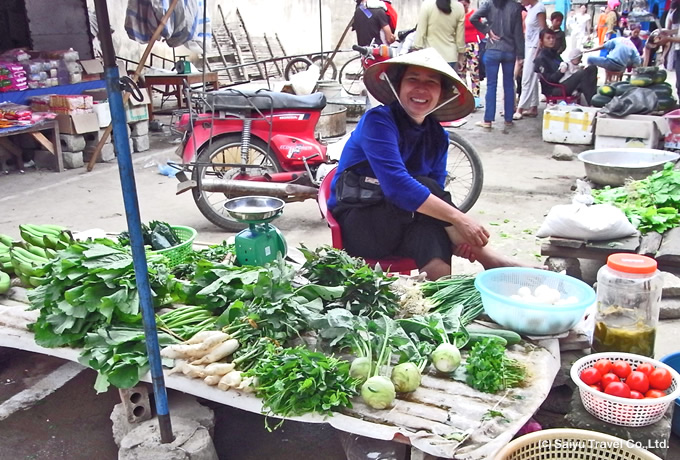 新鮮な野菜や果物の市が立ち、赤ザオ族や白モン族で活気あふれる朝市です。