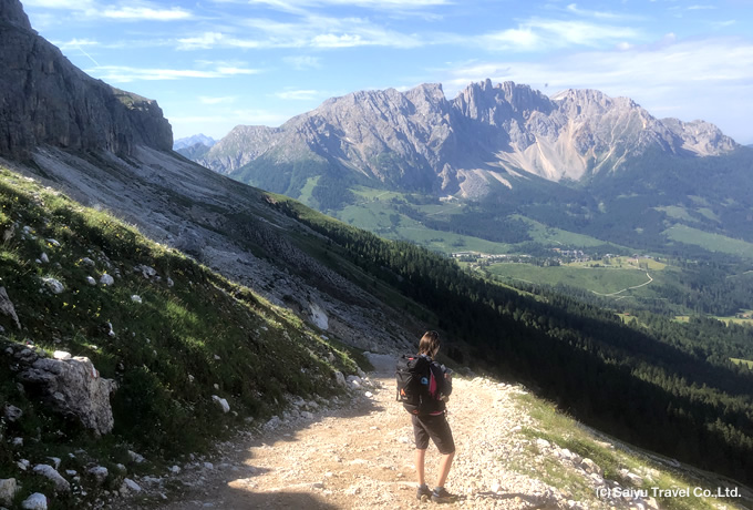 オーストリア・チロルでは渓谷美が特色のオーバーランド地方を訪れ、チロルらしいのどかなエッツタール(渓谷)のトレイルを歩き、ドロミテでは、西ドロミテの名峰ローゼンガルテン(カティナッチョ山群)の展望トレイルを歩きます。どちらも従来の西遊旅行のチロルやドロミテツアーでは訪れていないトレイルですので、再訪にもお勧めのルート選定です。