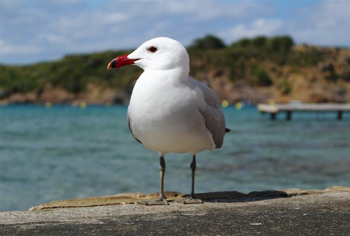 海岸線に佇む海鳥
