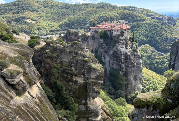 約4時間 | 午前、世界遺産メテオラの修道院群を徒歩で訪れます(徒歩約4時間)。奇岩群の上に造られ、美しい壁画が残るメガロ・メテオロン修道院とアギオス・ニコラオス修道院を見学します。午後は、カランバカの街の散策へご案内します。