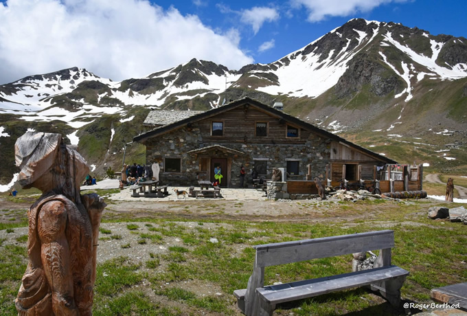 専用車でサン・ピエール村のヴェタン地区(1,800m)へ。ここからモンファレール小屋(2,385m)まで登ります(約3時間)。森の道沿いにはヴァッレ・ダオスタで最も人気のある彫刻家の一人、シロ・ヴィエリンによる数多くの木彫像が目を楽しませてくれます。 [約5km 高低差: +635m] 午後にはグルヌユイ湖を一周するハイキングを楽しみます。 [約4km 高低差: +100m] 山小屋泊