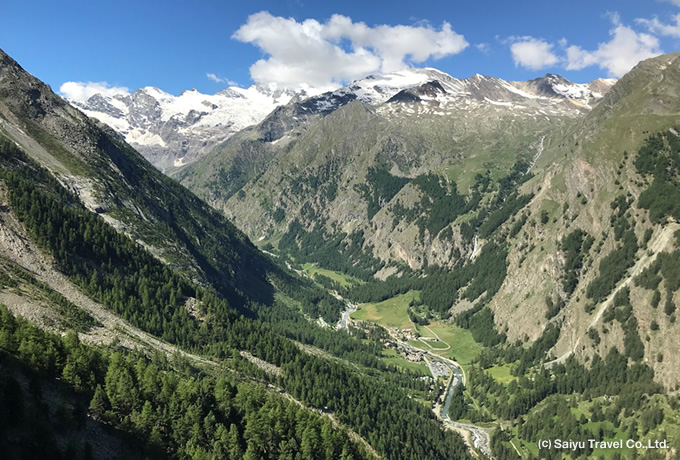 ドバイ着後、航空機を乗り換えてスイスのジュネーブへ。着後、専用車にてイタリア北部ヴァッレ・ダオスタ州エトルーブル(1,270m)へ。 ※グラン・サンベルナール渓谷とアルプスが織りなす、中世の雰囲気を残したかわいらしい村に3連泊します。 エトルーブル:ボー・セジュール泊