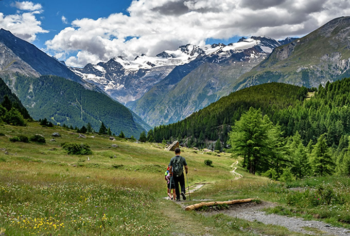アオスタ谷(ヴァッレ・ダオスタ州)はフランス、スイスと国境を接する北西イタリアにある州です。西アルプスに位置し、マッターホルン、モンブラン、モンテローザ、グラン・パラディーゾなどの名峰が連なり、古代ローマ時代からアルプス越えの交通の要衝として栄えました。初夏の花々が咲き誇る渓谷でのハイキングをお楽しみください。