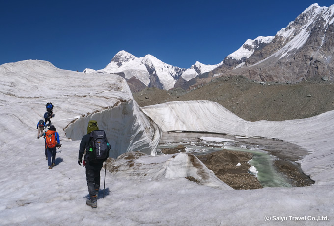 | トレッキングについて | 主に氷河のモレーン上で起伏の大きいアップダウンを繰り返すトレッキングです。長時間のテント泊を過ごし、足場の悪いトレイルを連続して歩くことのできる、十分な体力が必要な健脚向きのコースです。また、トレイルやキャンプ地の状況、天候、皆様の体調により、トレッキングの日程を変更させていただくことがあります。 |