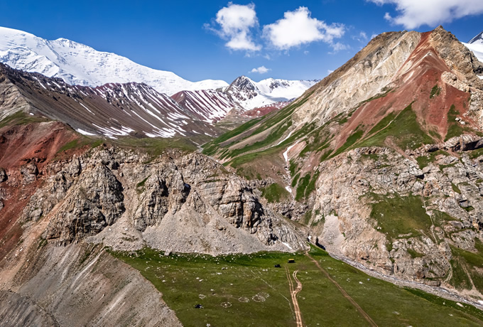 朝の航空機にてオシュへ。着後、専用車にてキルギス族の放牧風景を眺めながら、レーニン峰(7,134m)のベースキャンプ(3,600m)へ。途中、伝統的なアライ・キルギス族のヤクの放牧地である、トゥパル・クルを訪問します。ベースキャンプ着後、レーニン峰をはじめアライ山脈の展望をお楽しみください