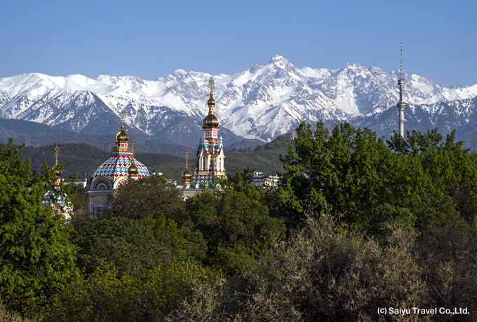 専用車にて国境を越え、カザフスタンへ入国します。着後、アルマトイ市内観光(パンフィロフ公園、グリーンバザール等)。夕食後、空港へ向かい、航空機にてソウルへ。