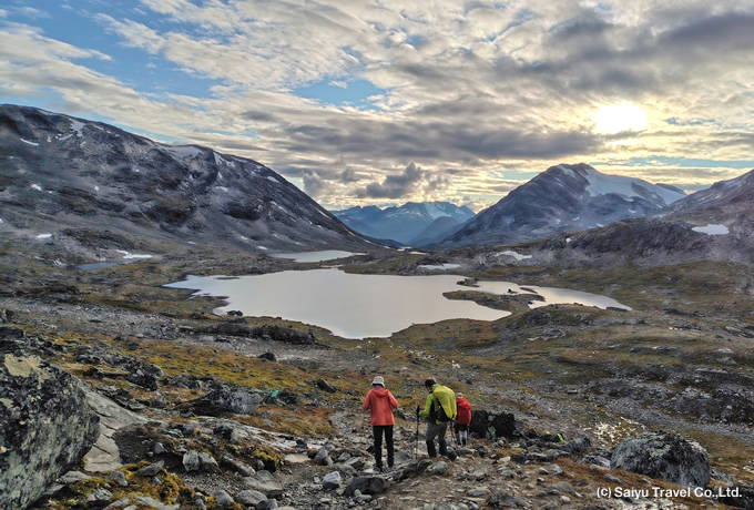 ドバイ着後、航空機を乗り換えて、ノルウェーの首都オスロへ。着後、専用車で“巨人たちの住処”を意味するヨートゥンハイメン国立公園へ。国立公園の玄関口となるイェンデスハイムの山小屋(994m)へ(約5時間)。
