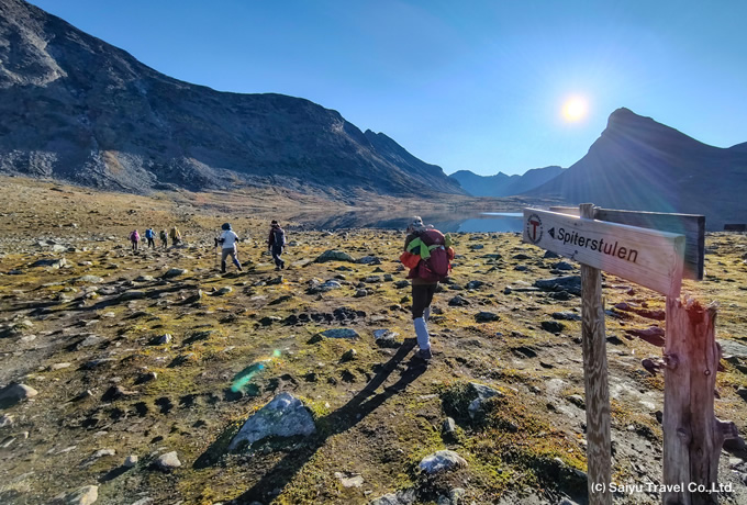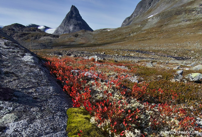 “巨人たちの住処” を意味するノルウェーのヨートゥンハイメン国立公園を舞台に、快適な山小屋を利用し4泊5日かけて全長53kmを縦走します。縦走の核心部となるベッセゲン尾根をはじめ、氷河が形成したU字谷や美しい湖など変化に富んだ山岳景観が魅力です。縦走の最後には、北欧最高峰ガルフピッゲンの頂を目指します。