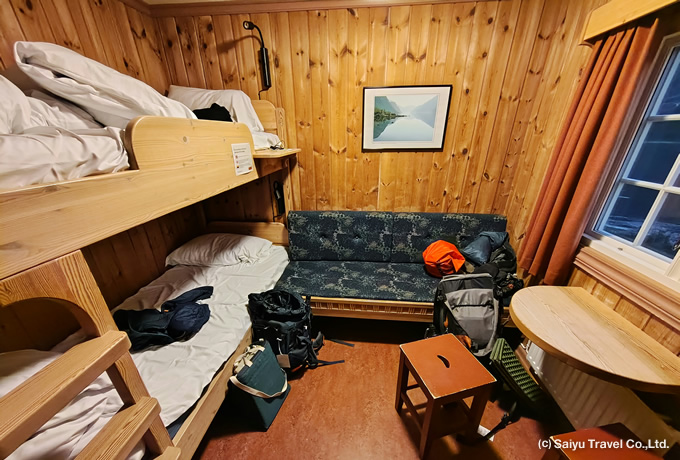 北欧屈指の山岳地帯・ヨートゥンハイメン国立公園の縦走には、ノルウェートレッキング協会(DNT)が管理する山小屋を利用します。そのクオリティは国内外で評判で、トナカイの肉料理やベリーのタルトなど地元の食材を使った食事は美味しく、部屋は清潔・快適です。温水シャワー、乾燥室、セントラルヒーター、売店などが完備されています。また、備え付けの寝具を利用するため寝袋やマットの持参は不要です。