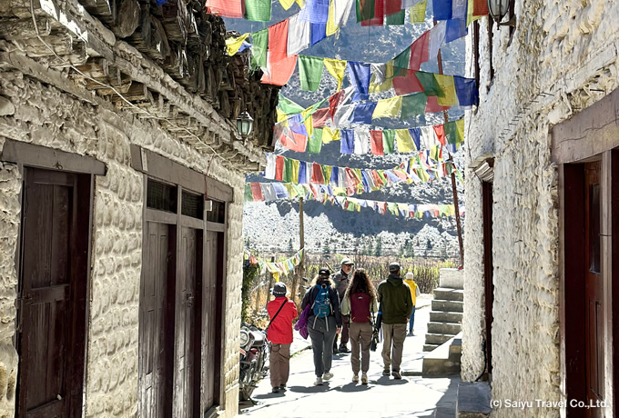 チベット交易路の宿場町の風情を残す、マルファ、カグベニ、そして聖地ムクティナートを訪問します。マルファでは探検家・河口慧海記念館にも訪れます。