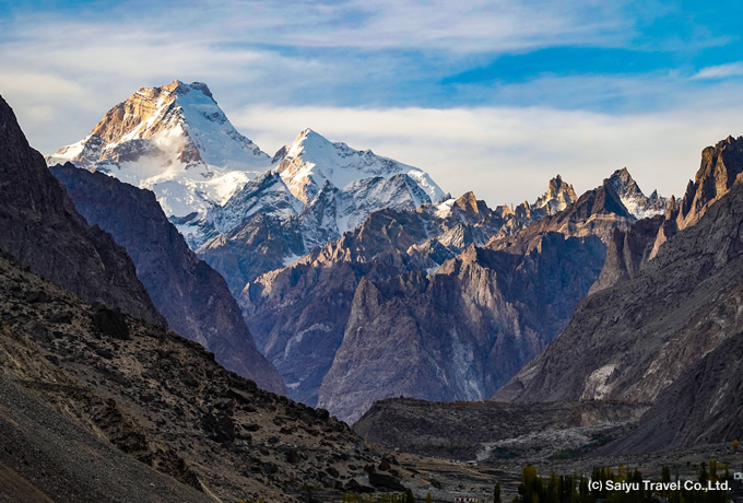 イスラマバードからスカルドゥ行きの国内線からは、晴れていれば世界第9位峰のナンガパルバット(8,126m)をはじめとするヒマラヤ・カラコルムの山々がご覧いただけます。着陸前のインダス川が造りだしたスカルドゥ渓谷の景色も圧巻です。