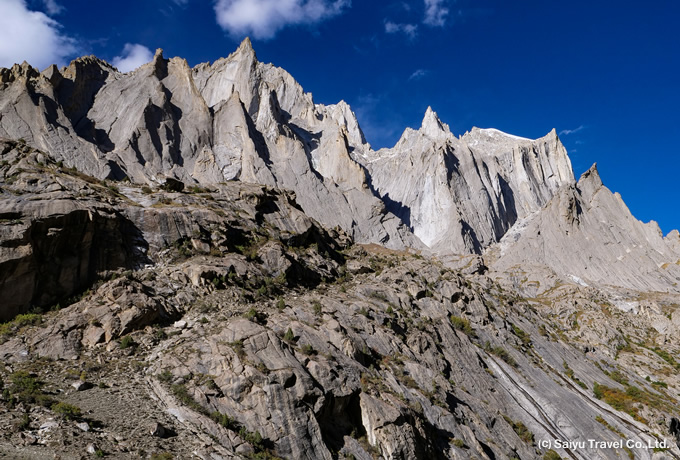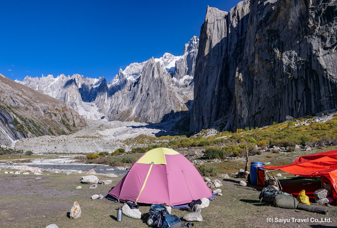 「パキスタンのヨセミテ」とも呼ばれるナングマバレーへ。カプルーの村を出るとカラコルム岩峰群が姿を現し、フーシェ谷の奥を目指します。目の前に岩峰を仰ぐキャンプ地で2連泊するトレッキングをお楽しみいただきます。