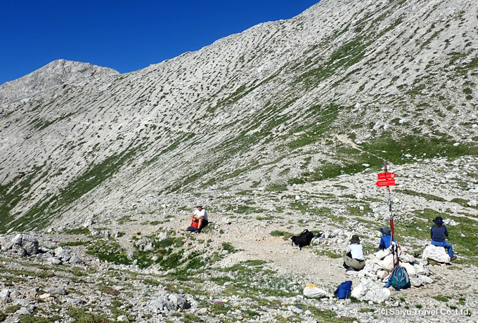 トリグラウ国立公園のセブンレイクス渓谷トレッキングへ。プラニナ・ブラト(1150m)から歩き出し、夏の放牧地プラニナ・デドノ・ポリェ(1560m)からスタプツェ峠(1851m)への山道が始まります。峠からはセブンレイクス渓谷に向け眼下のトリグラウ湖小屋(1685m)まで下ります。山小屋で一息つき、モチヴェツ湖からは谷を詰めるように登ります。エメラルドグリーンのヴェリコ湖や山上のゼレノ湖などを経てプレホダヴチ小屋(2070m)に到着します。小屋からは遠くイタリア・オーストリア方面の峰々、そしてトリグラウ南壁を間近に望みます。
