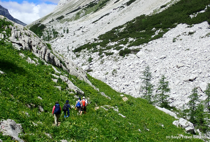 体力 トレイルは整備されていますが、ガレ場のアップダウンや足場の悪い箇所もあります。5日目は累積標高差1350mを山小屋1泊分の荷物を背負って登ります。普段から登山やトレッキングをされている方が対象です。