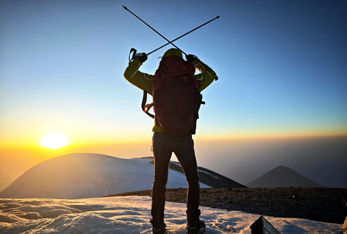 本コースは、標高5,137mの頂きを目指すアイゼンを使用した高所登山です。悪天候の場合は、最低気温はマイナス10℃程度になりますので、そうした環境を想定した防寒着の他に、雪山登山用の本格的な装備が必要となります。また、アイゼンや場合によってはロープを使用するため、通常の海外旅行保険のほか、運動割増保険へのご加入が必要です。