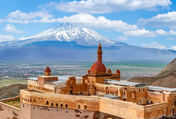 午前、ドゥバヤズット市内観光へ。17世紀に建てられたオスマン様式のイサク・パシャ宮殿やドゥバヤズット城、ノアの方舟伝承地などを見学します。昼食後、専用車でアール空港へ(約2時間)。着後、航空機にてイスタンブールへ。